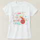 I came in like a festive ball. This silly Christmas t-shirt shows a woman with a drink in her hand riding on a Christmas tree ornament. She's surrounded by snowflakes and music notes.