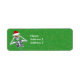 These return address labels have a funny Christmas skeleton holding shiny red and green ornaments up to his eyes wearing a red Santa Claus hat on a dark green background with tiny faux gold sparkles. Customize your name and address with the template.