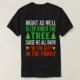 My 11 yo wore adult XL (5’7” 165#). The 8yo is small framed. She wore adult small and tied it in the back. Grandma wore adult large with long sleeve shirt underneath. Tall girl adult medium. Dark haired male adult large. Good quality dark Heather gray, Gildan brand shirt. -it was next up from basic choice and cost about $20 per shirt. Not too thick or thin. Washed and dried well, no major shrinkage. Not see-through. Can wear a bra under it fine. Screen print is just as shown and well done, front and back.