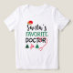 A cheerful t-shirt design showcases the phrase Santa's Favorite Doctor, adorned with festive elements. Perfect for medical professionals celebrating the holiday season with humor and style.