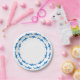 Take a bite, but watch your fingers! Circling shark pattern beach party paper plates. The blue background color is customizable.