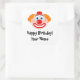 Funny circus clown custom kid's Birthday party stickers. Personalized label stickers with cute mime face cartoon. Add your own custom name and wishes.
