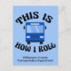 This funny gift for a city bus driver features a blue public transit bus inside the hilarious phrase This is How I Roll. A cool pop culture reference for a bus driver who likes modern humor. Cute personalized postcard for drivers with their custom text.