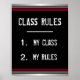 Humorous silver, red and black chalk board look "Class Rules" poster. Looks great with a black frame!