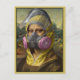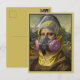 Awesome, cool TV‑themed art parody postcard reimagines the Mona Lisa as “Bad Mona,” suited up in Breaking Bad’s bright‑yellow hazchem gear. The full protective suit, pink‑filtered 3M respirator, and gritty painterly details create a playful crossover between Renaissance calm and Heisenberg chaos.