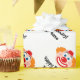 Funny clown face pattern custom Birthday Wrapping Paper. Personalize gift wrap rolls with name and cute mime with red hear.