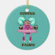 Lightweight, smooth, pure white ornament with nice sheen. Perfect size to be seen from across the room ... and to attract closer inspection! Price was great for ordering enough for the whole family! Clear, bold black design just as requested. Matches the order exactly. Just so nice!