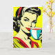 Pretty retro pop art lady with bandanna and coffee cup yellow and red vintage vibes card. Coffee doesn't ask questions, Coffee understands.