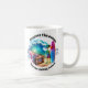 Funny coffee mug with et alien saying "Respect the ocean and the local surfers." on one side and the other "Respect the ocean and the visiting surfers."
