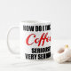 Cute coffee mug that says “How do I take my coffee Seriously Very seriously” in black and red text.