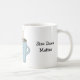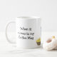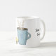 A funny coffee saying on this mug. A large blue mug of hot coffee with a muffin beside it. Message says' when it comes to my coffee mug, size does matter.