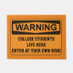Funny College Door Mat - Enter At Your Own Risk You never know what the inside of a college student's apartment, dorm, or house will look like. This funny doormat is a perfect gift for a graduate headed off to college