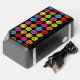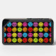 Funny colorful faces pattern design. Some are happy, silly, angry, winking, joyful, funny, in love, pouting, tongue out, and more fun emotions in colorful bright colors; yellow, orange, red, blue, red, pink, and purple, on a black background.