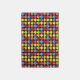 Funny colorful faces pattern design. Some are happy, silly, angry, winking, joyful, funny, in love, pouting, tongue out, and more fun emotions in colorful bright colors; yellow, orange, red, blue, red, pink, and purple, on a black background.