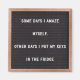 Letter board with saying : "Some days I amaze myself, other days i put my keys on the fridge."