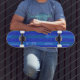 Funny Cool Chic Blue Geometric Stripes skateboard. Modern, popcorn anime style, festive refreshing fashionable, elegant design, chic and sophisticated, fun design