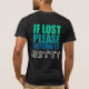 This design is meant to be personalized with the name of your BFF, buddy, spouse, or partner. It pairs perfectly with our 'I Am Betty' shirt. Don't get lost when you're on the road. This humorous design also works as a pairs costume or wedding gift and is suitable for black and dark-colored backgrounds. Easily customized by changing "Betty" to any other name and color.