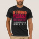 This design is meant to be personalized with the name of your BFF, buddy, spouse, or partner. It pairs perfectly with our 'I Am Betty' shirt. Don't get lost when you're on the road. This humorous design also works as a pairs costume or wedding gift and is suitable for black and dark-colored backgrounds. Easily customized by changing "Betty" to any other name and color.