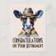 Funny Cow Cowboy Congratulations on Retirement postcard greeting with custom text and picture of a Holstein cow wearing sunglasses and a cowboy hat. Customize this wild west themed greeting card to celebrate your loved one's last work rodeo and their new freedom to do nothing more than relax in their favorite pasture all day!