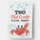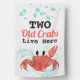 Funny ocean beach crab theme for your summer vacation home. Features an old crab with ocean bubbles and wave. Funny typography says "Two Old Crabs Live Here". Add some fun and laughter to your community neighborhood.