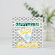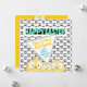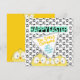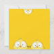 With three cartoon, crazy eyed chickens, on a black and white chicken foot print background in front and another three crazy chickens peeking-in, on a yellow background on the back, this one is just so much fun!