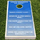 Funny blue cornhole set with insults for players. Create your own party game list of phrases or use the original ones. Great fun for a backyard party or group event.