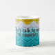 A charming crochet-themed coffee mug adorned with customizable words, allowing you to weave your unique warmth into every sip. The words on the mug say "Don't talk to me, I'm counting" but you can change them to say anything.