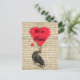 A fun vintage inspired change of address we've moved moving announcement card with a funny cute crow holding a bunch of red love heart balloons, on a distressed letter background, easily let your friends know your new address, remember to change the text or delete.