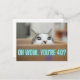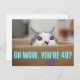Funny birthday postcard features photograph of curious cat peeking up from cardboard box with neon text that reads "Oh wow. You're 40?"