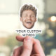Create your hilarious custom face sticker! Add any text under your photo for a unique and funny design. Perfect for laptops, water bottles, or as a gift to friends. Great for birthdays, pranks, or just expressing your mood. Features a curved text style and your own uploaded face for a bold, fun statement.