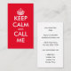Funny custom Keep Calm business card template. Professional visit card in red or custom color. Modern typography with crown. Keep calm and call me. Great for any type of company or self employed person. List your services or trade on the back. Make your clients smile with a fun office card.