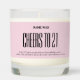 Celebrate the big 2-1 with this personalized “Cheers to 21” birthday candle! A stylish and fun keepsake for a milestone moment, this candle makes the perfect gift for your daughter, best friend, sister, or anyone turning 21. Customize the name and message to create a one-of-a-kind birthday surprise that smells as good as it looks!