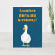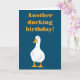 Customize both the message on the front and the inside of this card to create the perfect greeting for any occasion. This card features a simple illustration of a white duck with an orange bill and feet against a navy blue background with your message in coordinating orange. Have some fun creating your own duck-themed play on words message or leave the funny "Another ducking birthday?" greeting as is.