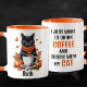 This Funny Cat mug features a cat with coffee and autumn pumpkins.