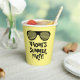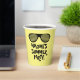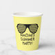 Funny custom paper cups for summer Birthday party. Add your own personalized text and name. Fun sunglasses design with cool typography. Great for celebrations with kids or adults. Also handy for other occasions like tropical wedding, summer BBQ, engagement, bridal shower, gathering, reunion, girls weekend and more. Disposable party supplies for home and office. Double sided print with yellow or other color.
