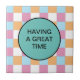 Cool, blue, orange white, and pink checkerboard pattern and a text template. To edit, click personalize and change the words.