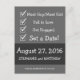 Catch the attention of all your invited guests with this funny, cute, quirky, and unconventional Save-the-Date postcard that features a checklist of important events that lead up to the big day. Text is in a playful white font on light and dark gray.