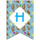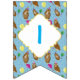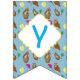 Funny Cute Blue Owl Themed Birthday Party Bunting Flags.