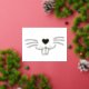 Funny cute Easter bunny rabbit face illustration rose, gold or silver foil Easter postcard.