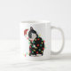 A funny winter holiday design of cute cat tangled in Christmas lights.