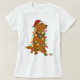 A funny winter holiday design of cute dog tangled in Christmas lights.