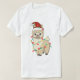 A funny winter holiday design of a cute llama tangled in Christmas lights.