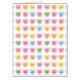 Fully customizable text. So you can personalize the message inside each heart and make each heart / message unique. 16 hearts that make up the pattern. Assorted colors. 6 pink hearts, 2 orange hearts, 2 blue hearts, 2 green hearts, 2 purple hearts, 2 yellow hearts. White editable color background.