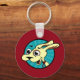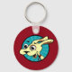 Funny cute dog illustration round basic button key chain. Background color can be customized.