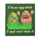 A cute Easter egg cartoon with two painted / dyed eggs hiding in the green grass. One is camouflaged and taking the hunt very seriously. The other, brightly colored egg is too excited to hide. It's waving its arms, grinning. (On most but not all products) the text with pun says, "I'm so egg-cited I just can't hide it." This funny, silly comic design is unique and original and would be cute to wear for an Easter egg hunt or all spring, for a child / baby or a young-at-heart adult.