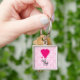 Funny cute elephant & pink damask keychain