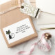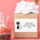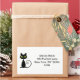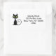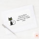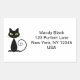 Humorous sticker labels show a cool black cat with green eyes and a curling tail. The name and address display to the right in a modern font. Customize and personalize the text.