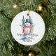 Funny Cute MInimalist Snowman Frosted Forest Ceramic Ornament