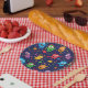 This is cute funny monsters pattern with balloons and confetti on dark blue background. It's great paper plate for Halloween parties