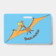 Funny cute orange flying pterodactyl cartoon badge